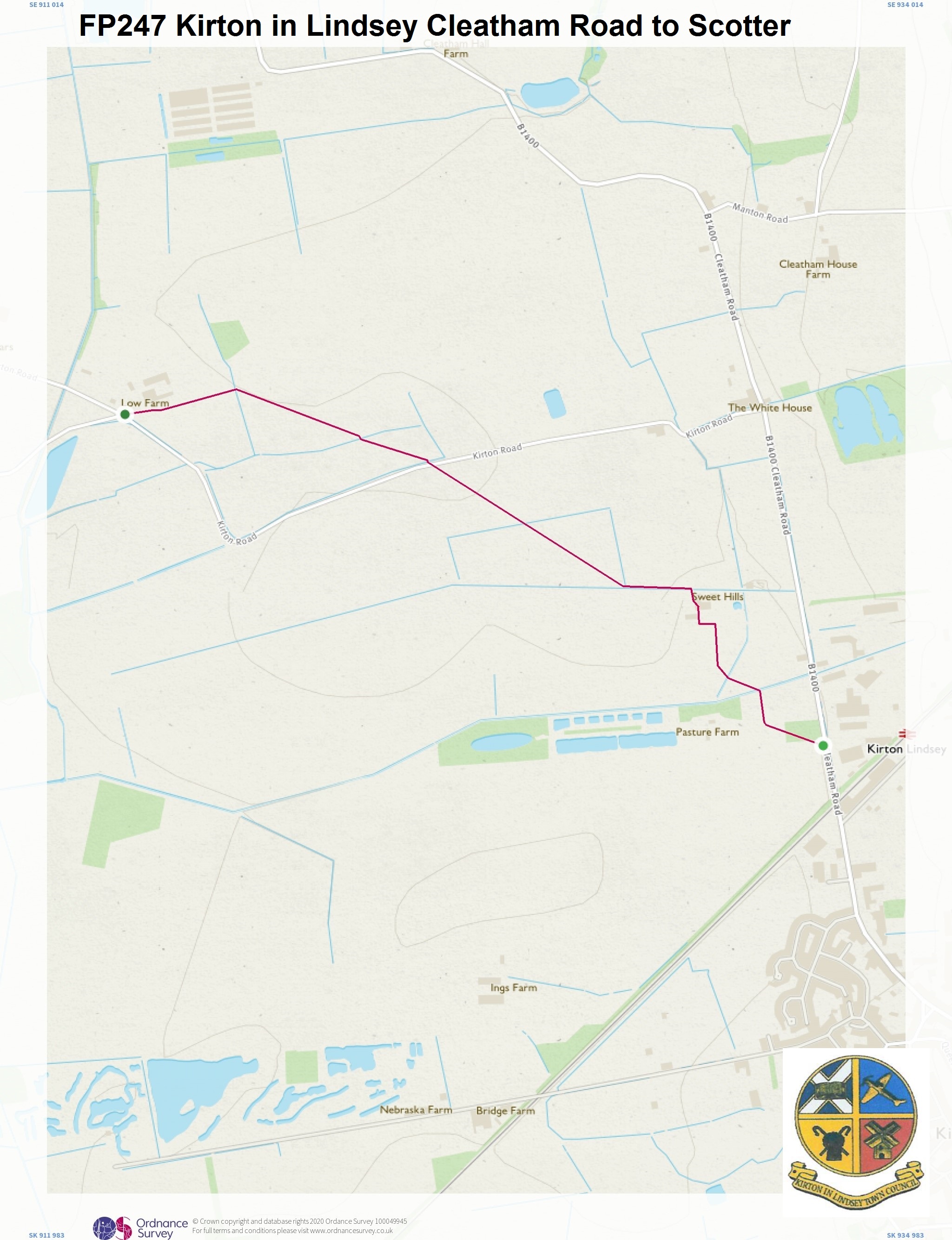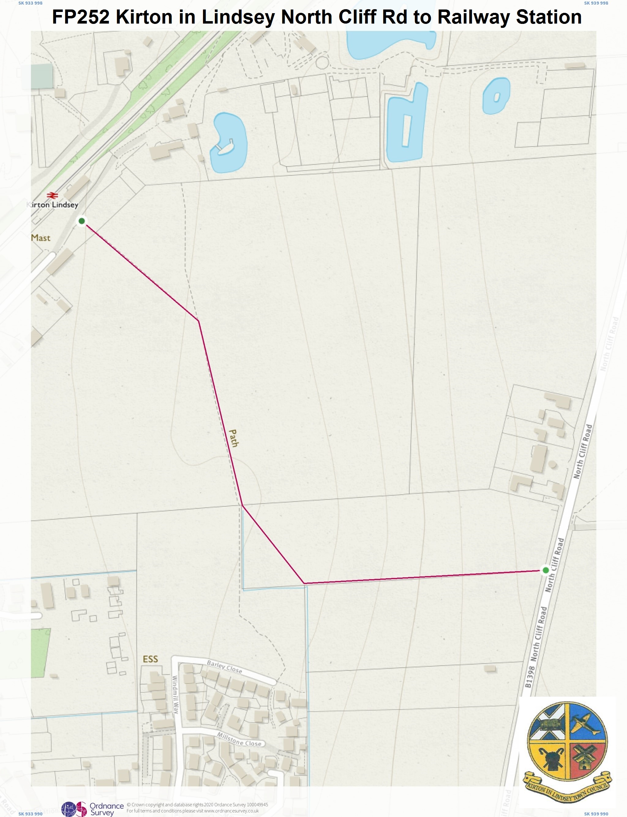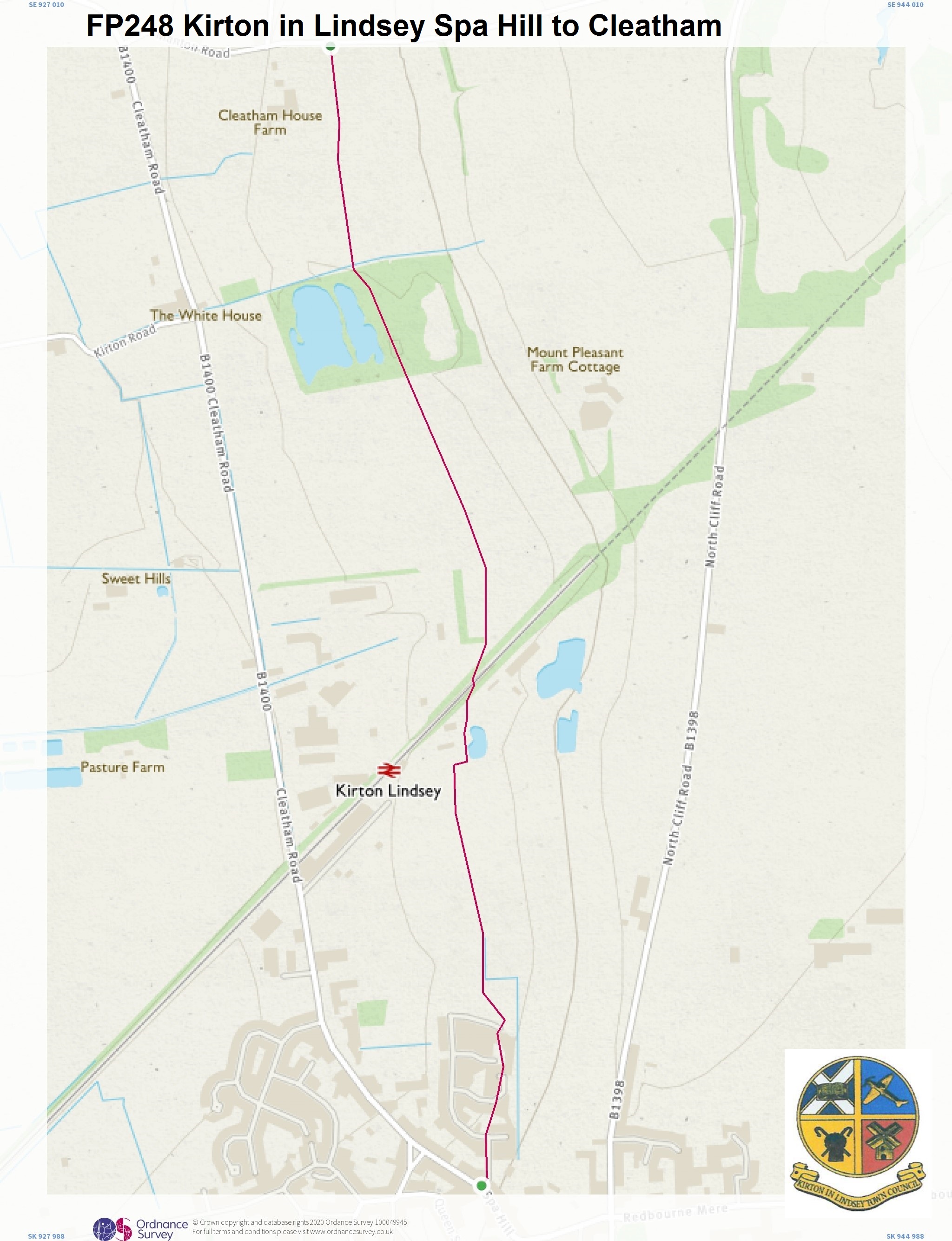 The Definitive Map published by North Lincolnshire Council shows the location of the historic public footpaths (marked in purple) and bridleways (marked in green) within Kirton in Lindsey.